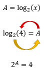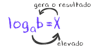 Vocês já viram algo semelhante a figura acima? Pois é, no texto Introdução aos Logaritmos, nós vimos que essa é a maneira de resolver um logaritmo, ou seja, de aplicar a logaritmação, que é apresentada abaixo: