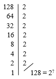 Agora, a ideia é obtermos uma igualdade de potências de mesma base, como já aprendemos lá nas Equações Exponenciais. Para isso, vamos fatorar o termo 128, e reduzi-lo a uma potência de base 2, vejam só: