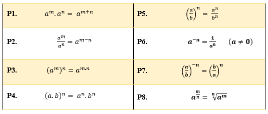 Tranquilo né pessoal? Vamos seguir com nossos exercícios, mas antes gostaria de reforçar mais uma ideia. Como estamos transformando nossos logaritmos em expressões exponenciais, novamente vamos utilizar muito as propriedades da potenciação. Por isso trago abaixo uma tabelinha para que vocês revisem todas elas!