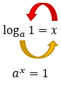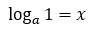 Assim, podemos concluir que quando o logaritmando de um certo logaritmo for igual a 1, seja qual for o valor da base a, que esteja, é claro, de acordo com as restrições (0 < a ≠ 1), o resultado será zero. Querem saber porquê? Vamos supor que o resultado do logaritmo de 1 na base a seja um certo valor x.