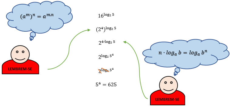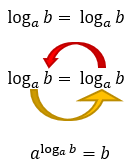 Se o expoente de uma potência for um logaritmo, e o valor da base desse logaritmo for igual ao da base da potência, então o resultado será o próprio logaritmando.