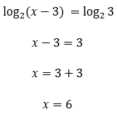 Calcule o valor de x tal que log2 (x – 3) = log2 3.