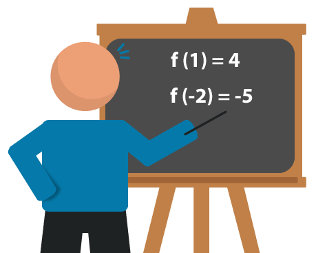 Nesses dois exemplos, vejam que a função f(x) = 3x + 1, assumiu valores diferentes para cada valor de x que foi atribuído. Quando substituímos x por 1, a função assumiu o valor 4; já quando substituímos x por –2, a função assumiu o valor –5. Isso significa que 4 é o valor da função quando x é igual a 1, da mesma forma que –5 é o valor da função quando x é igual –2.