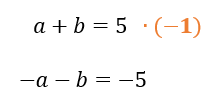 Querem um exemplo do que isso significa? Pois bem, e se antes de somarmos as equações do sistema, nós multiplicássemos toda a primeira equação por –1?