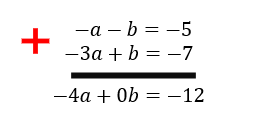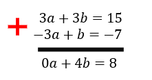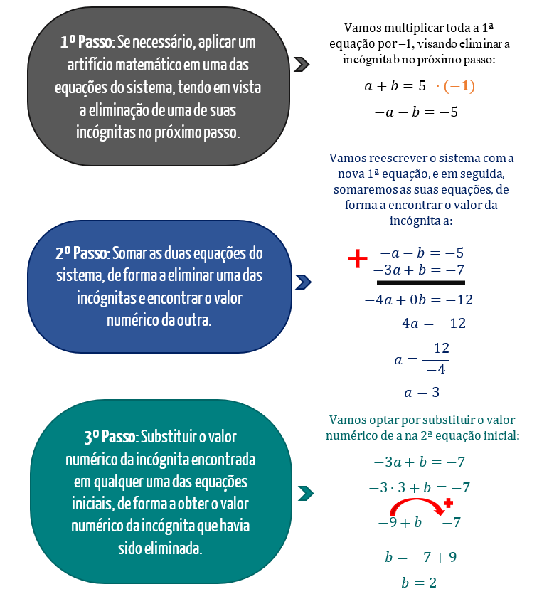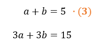 Ora, vejam que desta forma nós conseguimos eliminar a incógnita a! Que interessante não é mesmo? Então pessoal, utilizar um artifício matemático aqui, significa multiplicar ou dividir toda uma equação por um valor numérico apropriado, que torne possível o cancelamento de uma das incógnitas quando for realizada a soma das equações. É importante lembrar também, que multiplicar ou dividir toda uma equação por um mesmo valor, não altera a característica inicial do sistema, porque as proporções entre os valores irão se manter. Só não dá para esquecer de fazer isso antes e depois da igualdade, certo?