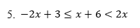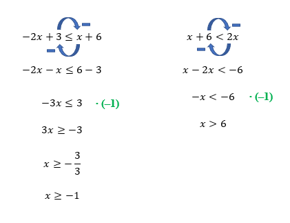 O fato de as duas inequações deste exemplo possuírem a incógnita x de ambos os lados da desigualdade, não altera em nada o método que utilizamos anteriormente. Resolveremos as duas separadamente, e na sequência, faremos a intersecção das duas soluções encontradas.