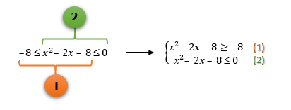 1. –8 ≤ x2 – 2x – 8 ≤ 0