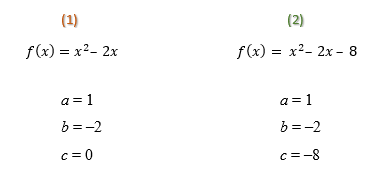 1. Determinar o valor dos coeficientes a, b, e c de cada função.
