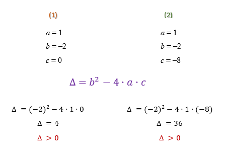 2. Calcular o discriminante (∆) de cada uma das funções.