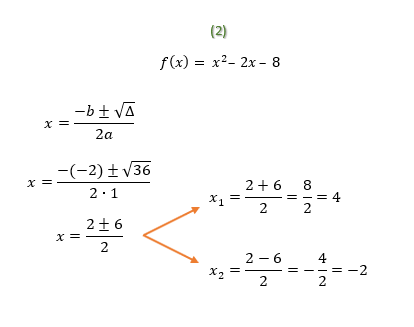 3. Encontrar as raízes das funções através da fórmula de Bhaskara ou do método da soma e produto.