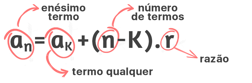 Mas o fato mais interessante, é que é possível encontrar o valor de qualquer termo de uma PA, conhecendo apenas o valor de algum outro termo desta progressão, e a sua razão r. Para fazer isso, basta utilizarmos a fórmula do termo geral de uma PA, essa que aparece logo abaixo: