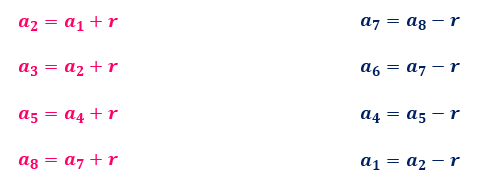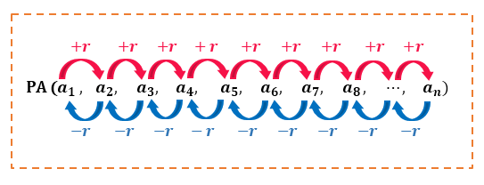 Observando o quadro, também podemos dizer que uma PA é uma sequência em que qualquer termo, que não seja o último, pode ser obtido através da subtração da razão r do seu termo sucessor, como mostram os exemplos: