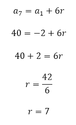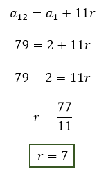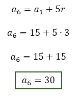 Desta forma, nós conseguimos perceber que de a1 até a7 existem 6 saltos da razão r. Por isso, é possível dizer que a7 é igual a a1 acrescido de 6 razões:
