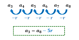 E se o nosso objetivo fosse encontrar o valor do termo a3 de uma PA, conhecendo apenas o valor do termo a8 e a sua razão r? Nesse caso, subtraindo 8 de 3, nós temos o resultado –5, e nossa fórmula do termo geral da PA ficaria assim: