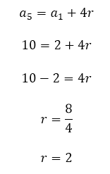 Até aí tudo certo, não é mesmo? Mas vocês não sentiram falta de nenhuma outra grandeza? Pois é, nós não conhecemos a razão r que torna essa sequência uma progressão aritmética!!! Então pessoal, é por isso que nós temos falado tanto na fórmula do termo geral da PA, porque na medida em que conhecemos dois termos quaisquer de uma progressão aritmética, mesmo que distantes um do outro, como a1 e a5, por exemplo, essa fórmula nos permite encontrar a razão r dessa progressão.