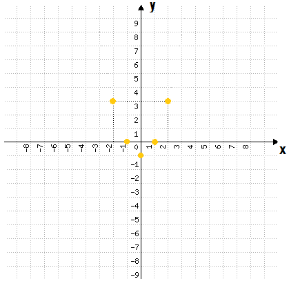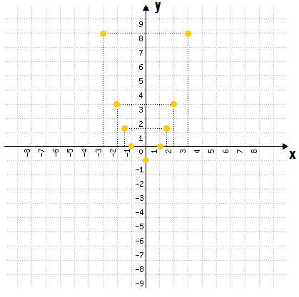 A forma como esses pontos estão localizados no plano, já nos dá uma ideia de como é o comportamento da função como um todo. Mas se vocês desejarem tornar a representação ainda mais precisa, podem calcular mais alguns pontos, com valores de x tais como –3, –1,5, 1,5 e 3.