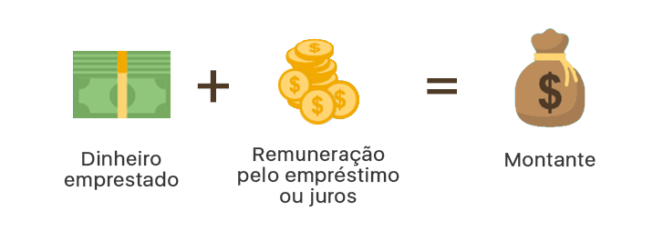 Vou explicar de outra forma pra ficar mais fácil o entendimento para vocês. Imagine que você possui uma certa quantia (capital) e aplique ela em uma caderneta de poupança por um determinado período (tempo), como se você estivesse fazendo um empréstimo ao banco. Mesmo os bancos não trabalhando com o sistema de juros simples, vamos imaginar isto apenas como um exemplo para você entender melhor os juros simples. Então, no final deste período, você recebe uma quantia (juros) como compensação. O valor dessa quantia é estabelecido por uma porcentagem (taxa de juros) e ao final da aplicação você terá em sua conta a quantia correspondente ao capital que você investiu mais os juros desta aplicação (montante).