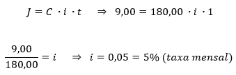 É muito importante que vocês lembrem sempre que a taxa e o tempo devem se referir a mesma unidade de tempo (% ao mês e meses, % ao dia e dias, % ao ano e anos, e assim por diante). Quando aparecerem problemas com unidades de tempo diferentes, basta fazer uma regra de três e transformar em apenas uma das unidades.