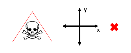 Quando não estamos muito acostumados com o plano cartesiano, corremos o risco de representá-lo com setas que apontam para ambos os sentidos dos eixos x e y. Mas isso é extremamente perigoso, como mostra a figura acima, porque está errado. As setas devem apontar sempre para o sentido positivo ou crescente dos eixos das abscissas e das ordenadas!