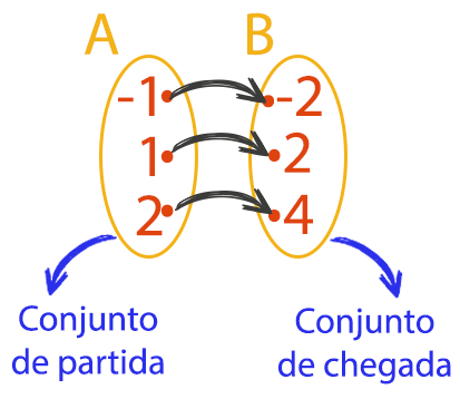 Se nós multiplicarmos todos os elementos do conjunto A por 2, ou seja, se obtermos o dobro desses valores, nós encontraremos os elementos de B! Incrível não é mesmo? Por isso, podemos dizer que a lei de correspondência do nosso exemplo está associando cada elemento de A ao seu dobro, em B.