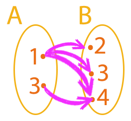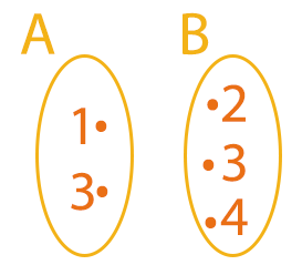 Sejam os conjuntos A = {1, 3} e B = {2, 3, 4}, associar cada elemento de A a um valor maior em B.