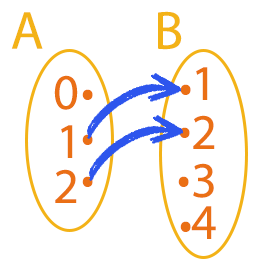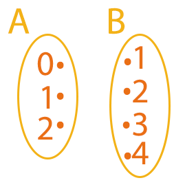 Sejam os conjuntos A = {0, 1, 2} e B = {1, 2, 3, 4}, associar cada elemento de A ao seu igual  valor em B.