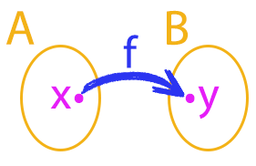 Dados dois conjuntos A e B, uma função de A em B é uma regra que indica como associar cada elemento x ϵ A a um único elemento y ϵ B.