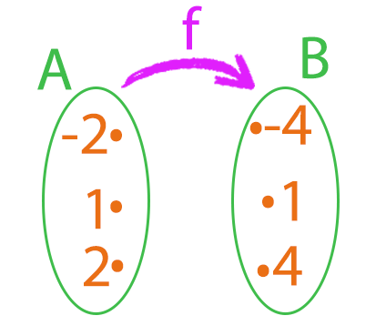 A = {-2, 1, 2} e B = {-4, 1, 4}