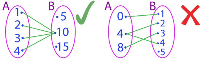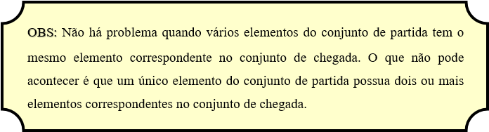 Será mesmo? Vejam que não restou nenhum elemento no conjunto A ou no conjunto de partida, sem ligação, e é isso que importa, não há problema quando restam elementos apenas no conjunto de chegada. Além disso, apesar de dois elementos de A serem correspondentes ao mesmo elemento de B, há apenas uma única seta saindo de cada elemento de A.