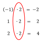 Certo, mas por que exatamente os elementos -1, 1, e 2, do conjunto A, estão sendo ligados respectivamente a -2, 2, 4, do conjunto B, quer dizer, qual é a relação entre esses elementos? A relação utilizada para associar os elementos dos dois conjuntos é conhecida como lei de correspondência, e se vocês observarem os cálculos abaixo, já ficará mais claro qual foi a lei de correspondência utilizada nesse exemplo: