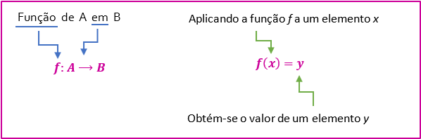 Assim, nós teremos uma função sendo aplicada aos valores de x que resultará nos valores y. Em símbolos nós podemos dizer que: