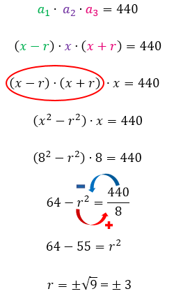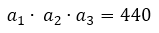 Também se diz que o produto dos termos da mesma PA é igual a 440, e isso nos dá uma nova equação: