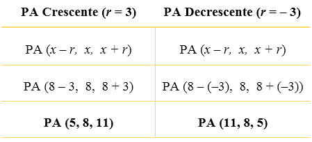 Uma PA de 3 termos costuma ser definida da seguinte maneira:
