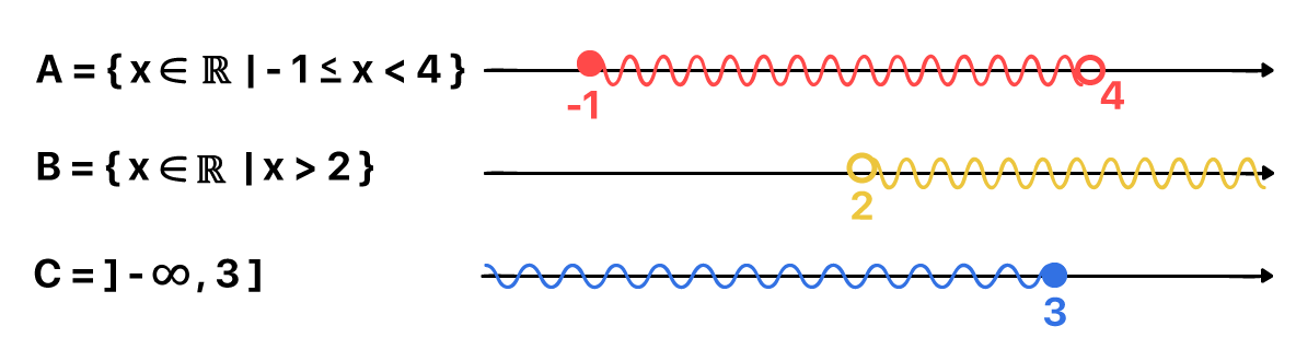 Beleza, pessoal? Então, vamos começar! Neste texto, nós utilizaremos os 3 intervalos reais listados abaixo como base para exemplificar as operações de união, intersecção e diferença entre os intervalos.