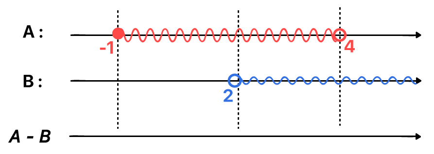 A – B = [ –1 , 2 ] = {x ∈ ℝ | –1 ≤ x ≤ 2}