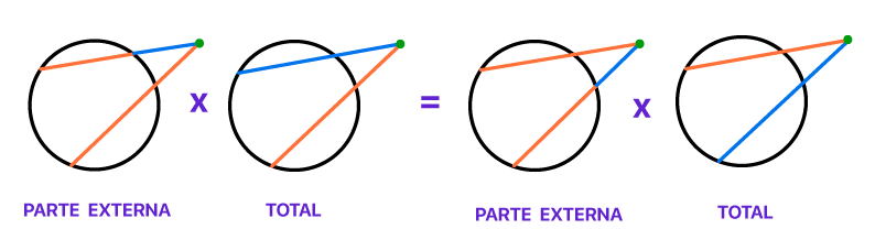 Se por um ponto exterior a uma circunferência, traçarmos duas secantes a ela, então o produto da medida da primeira secante pela sua parte exterior é igual ao produto da medida da segunda secante pela sua parte exterior.