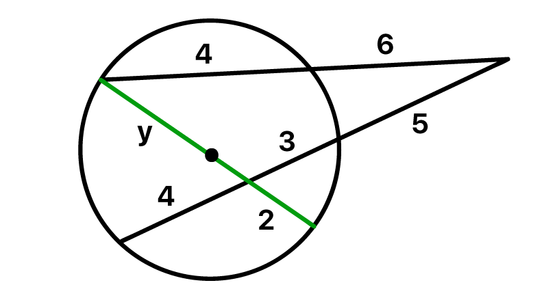 Essa nova situação nos permite enxergar com mais clareza a solução para o problema. Vejam que uma das cordas da circunferência em questão, passa exatamente sobre o centro da circunferência, portanto, o seu comprimento total corresponde ao diâmetro da mesma. Assim, se descobrirmos a medida y de uma das partes dessa corda, poderemos obter o diâmetro da circunferência com tranquilidade, e a partir dele, fica fácil de determinar o raio também, não é mesmo?