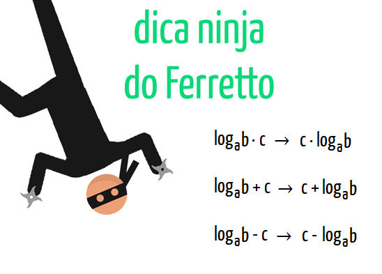 Assim, eu garanto, não haverá confusão alguma quanto aos termos que fazem parte do logaritmando dos mais diversos logaritmos. Agora, é hora de conferirmos mais uma propriedade!