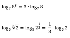 Vejam que no último exemplo, o logaritmando era composto por um radical. Mas felizmente, todo radical pode ser representado na forma de potência de expoente fracionário, através de uma das propriedades da potenciação. Bom, se há a formação de uma potência, então é claro que podemos aplicar a propriedade do logaritmo da potência, e assim, o expoente fracionário pula para a frente do logaritmo e o multiplica como um todo.