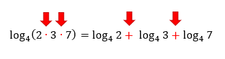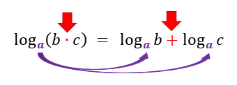 De acordo com essa propriedade, quando temos um único logaritmo de um produto entre dois números b e c, esses dois números b e c podem se separar em dois logaritmos distintos, cuja base será a mesma do logaritmo “original”. Ou seja, uma multiplicação em um mesmo logaritmo, pode se transformar em uma adição de dois logaritmos distintos.