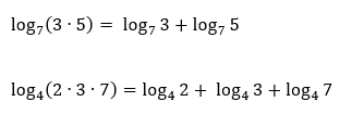 Observem no último exemplo, que esta propriedade não se restringe ao logaritmo do produto de apenas 2 termos. Ela pode ser utilizada para o produto de n termos, desde que ao aplicar a propriedade, o número de multiplicações seja convertido no mesmo número de adições de n logaritmos distintos.