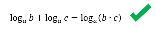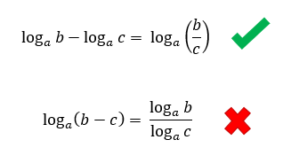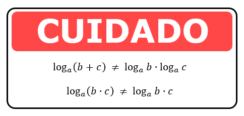 O tamanho do quadro acima faz referência ao tamanho do problema que vocês enfrentarão se adotarem como igual alguma das sentenças acima. Nós estudamos que uma multiplicação em um mesmo logaritmo, pode se transformar em uma adição de dois logaritmos distintos, mas não o contrário, como mostra a primeira sentença do quadro. Uma soma em um mesmo logaritmo não pode se transformar em um produto de dois logaritmos distintos, porque essas operações não resultam no mesmo valor. O que realmente é válido, é encontrarmos uma adição de dois logaritmos de mesma base, e transformarmos isso em um único logaritmo de um produto, o que é exatamente o processo inverso da propriedade que acabamos de aprender: