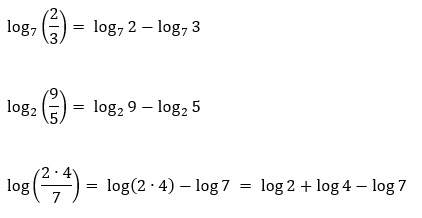Numa mesma base a (a > 0 e a ≠ 1), o logaritmo do quociente de dois números reais e positivos é igual à diferença entre os logaritmos desses números.