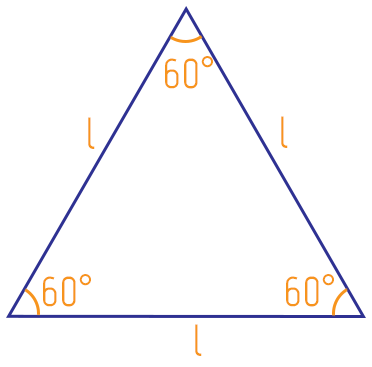 Como nós vimos no início do texto, um triângulo equilátero possui os seus três lados congruentes entre si, ou seja, de mesma medida, que aqui chamaremos de l. Uma consequência disso, é que seus três ângulos internos acabam tendo a mesma medida também. Mas vocês sabem como é possível definir exatamente o valor de cada ângulo interno de um triângulo equilátero?