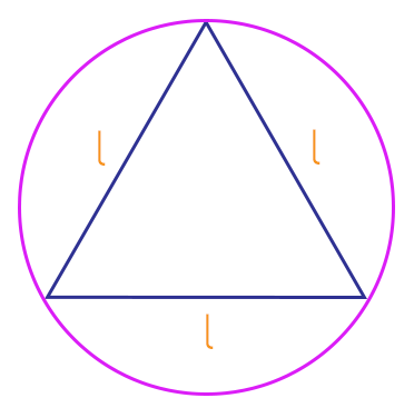 Vejam como a sequência de números 2, 3 e 4 pode nos ajudar a memorizar a fórmula. Basta dispor os números da maneira apresentada acima, e em seguida adicionar a letra l, a raiz quadrada e o sinal de divisão. Melhor agora não é? Assim nós podemos continuar, e veremos na sequência duas propriedades que envolvem os raios das circunferências inscrita e circunscrita ao triângulo equilátero. Vem comigo aqui!