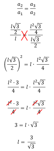 Se nós substituirmos os nossos termos em função do lado l, nas razões apresentadas acima, poderemos obter facilmente a medida do lado do triângulo equilátero, vejam só: