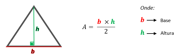 Fácil né!? Observem que para determinar a altura do triângulo equilátero, basta que multipliquemos a medida do lado desse triângulo por raiz quadrada de 3, e depois façamos a divisão do resultado por 2. Agora, vamos descobrir qual é a fórmula da área de um triângulo equilátero, e para isso, partiremos da fórmula utilizada para descobrir a área de todo e qualquer triângulo, a conhecida: